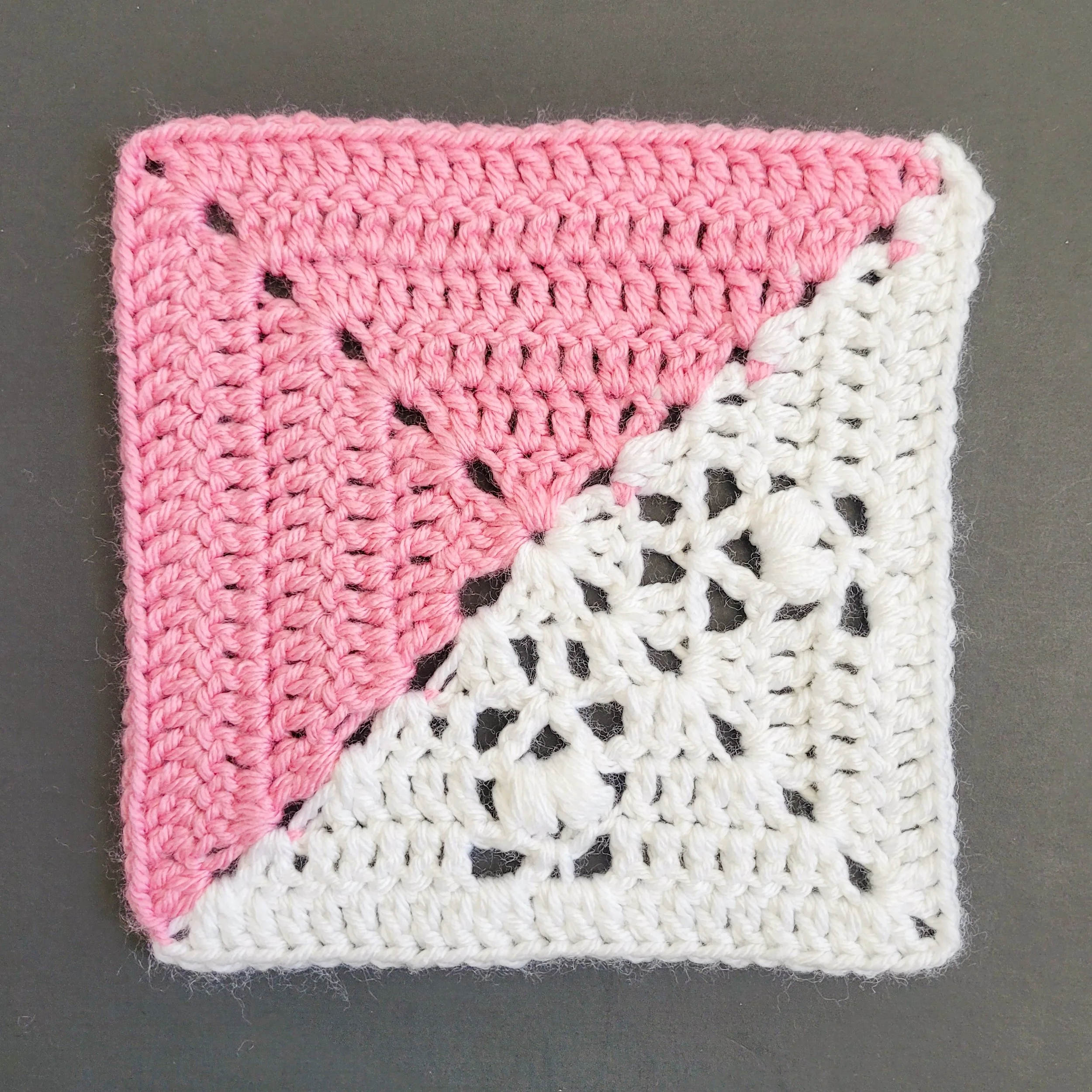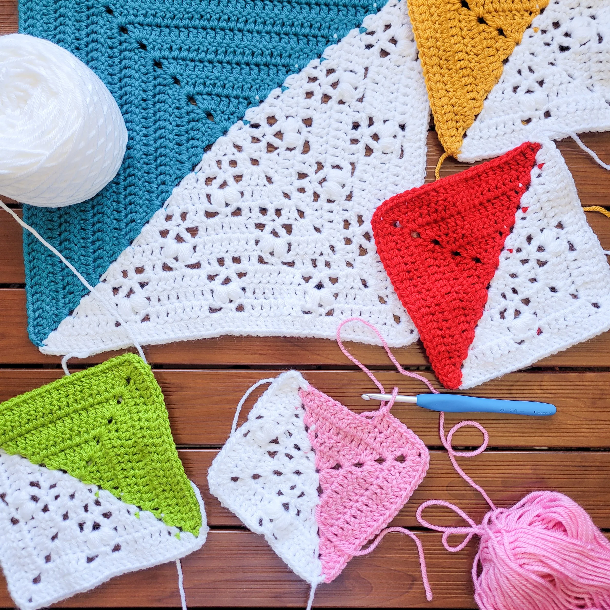 • A video tutorial will walk you through crocheting the first 4 rounds, introducing you to the half-square-triangle colorwork technique and giving you a solid foundation for crocheting the squares used in this blanket.