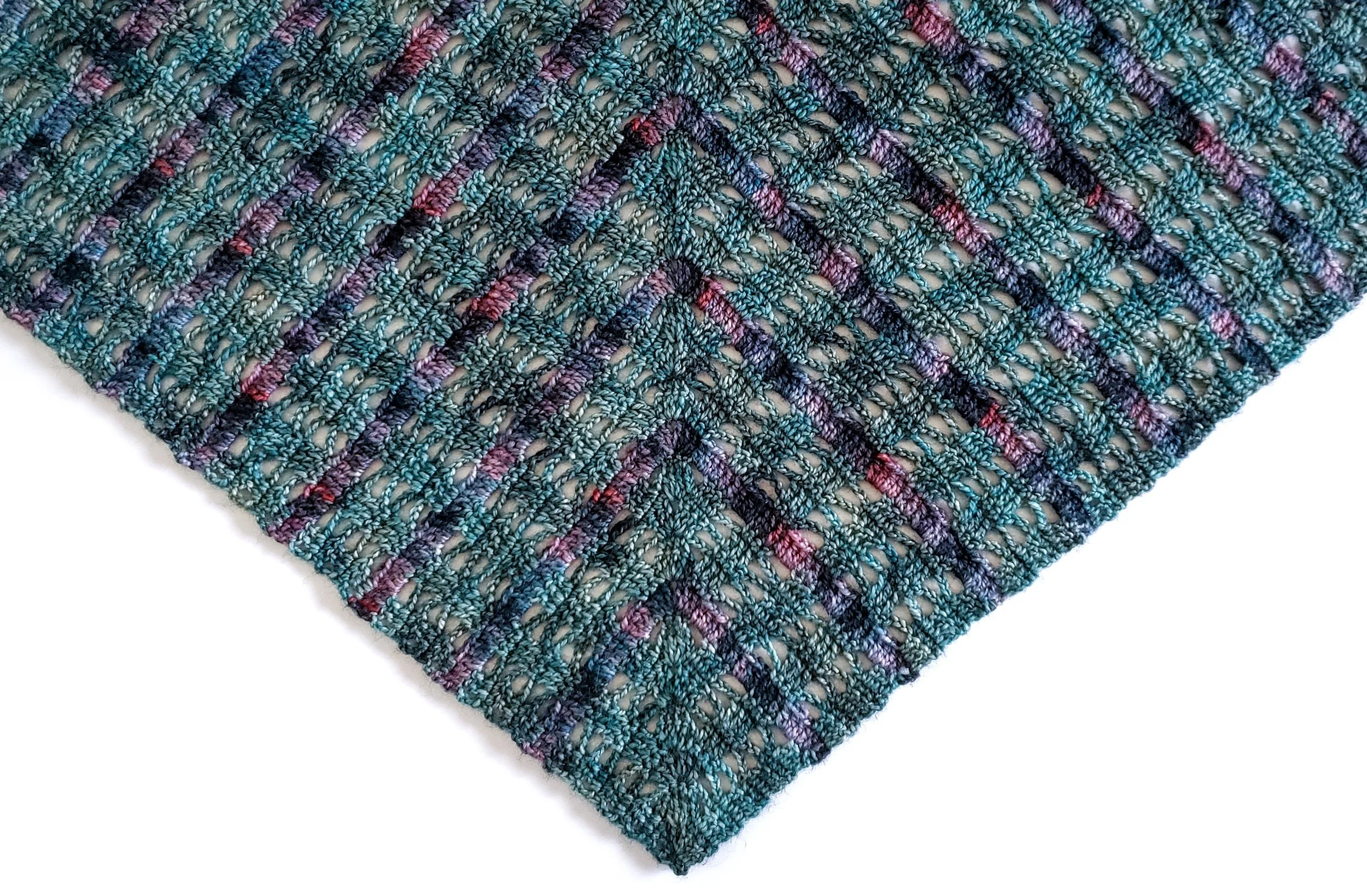 The construction of this shawl involves simple stitches and relatively uncomplicated shaping, making it a great pattern for an adventurous beginner. With increases at the center of every third row, the shawl begins with a diamond-shaped main panel. This center panel is quick and easy to crochet, and the pattern is easy to memorize. After the center panel is complete, you will work one wing at a time, decreasing along the top edge to create a triangle. These wings require a little more concentration. The pattern includes crochet stitch charts for the main panel and wings, as well as a Color Sequence Chart & Checklist to help you keep track of color changes as you go.