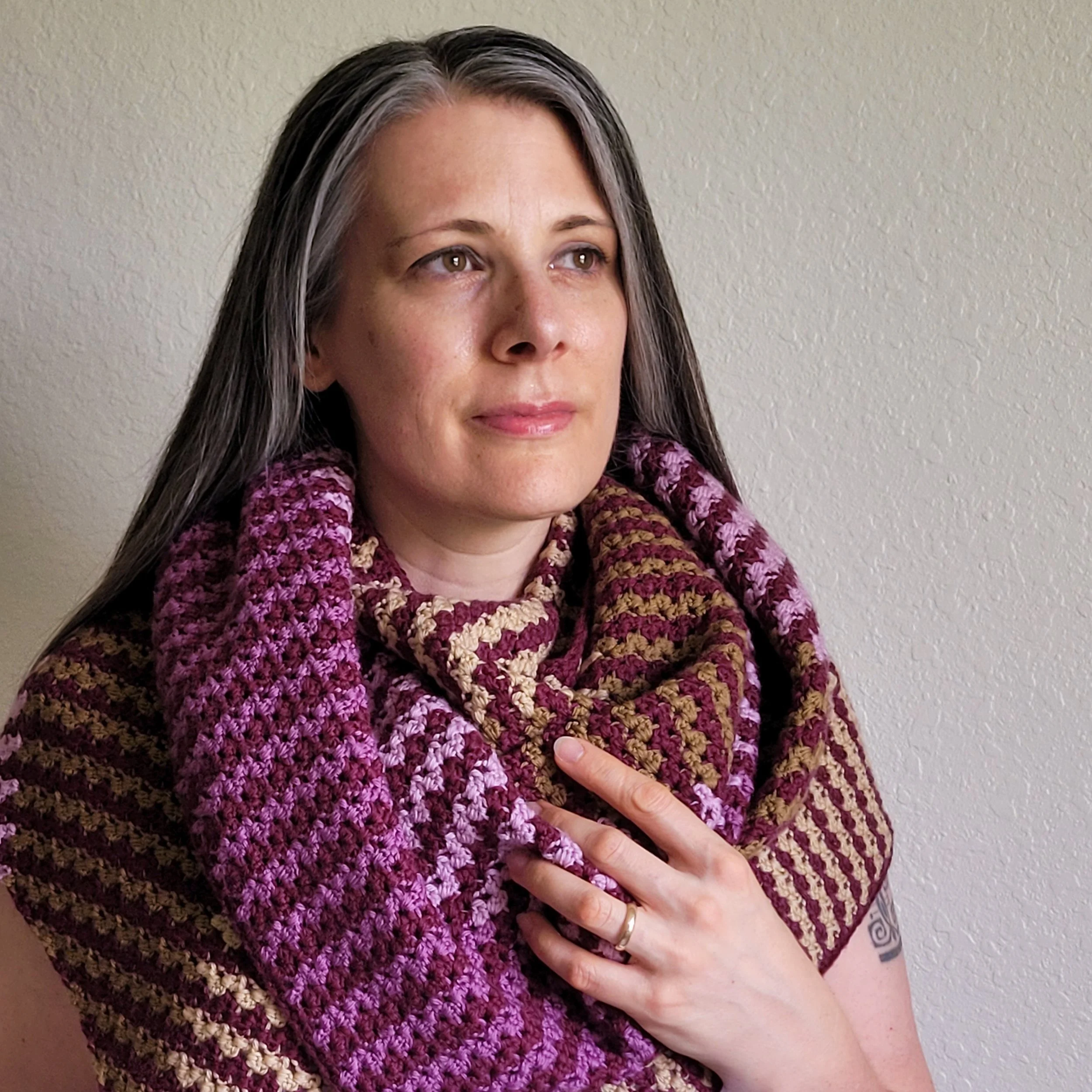 Working into chain spaces like this gives the fabric a lovely, soft drape — perfect for large accessories like this wrap. And best of all, the fabric is completely reversible. Whether worn around the neck or around the shoulders, this wrap is a lot of fun to style and wear!