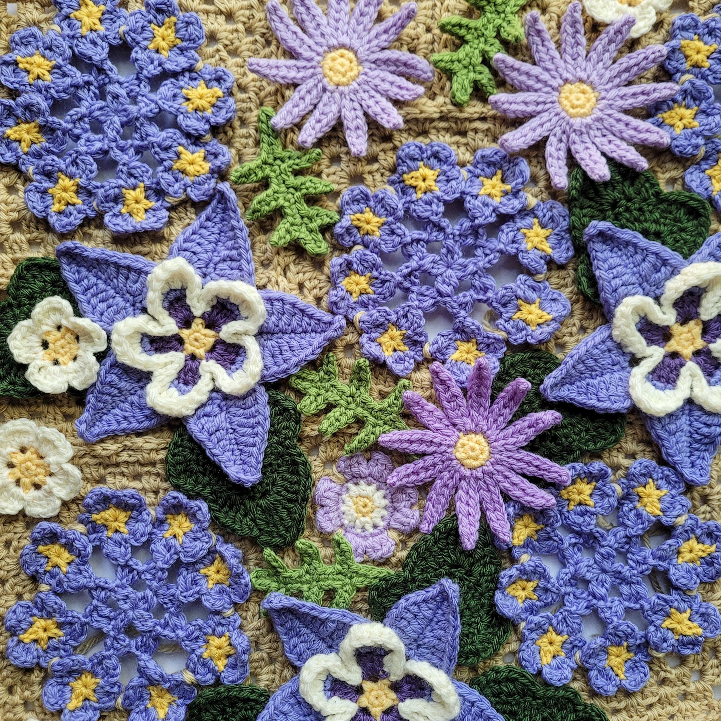 I’ve also decided to turn some of my wildflowers into granny squares. I’ll still applique a lot of the flowers and leaves, but I think having some flowers built into some motifs will add to the layered effect. And the granny stitch background should be more stable than the fabric I had before.