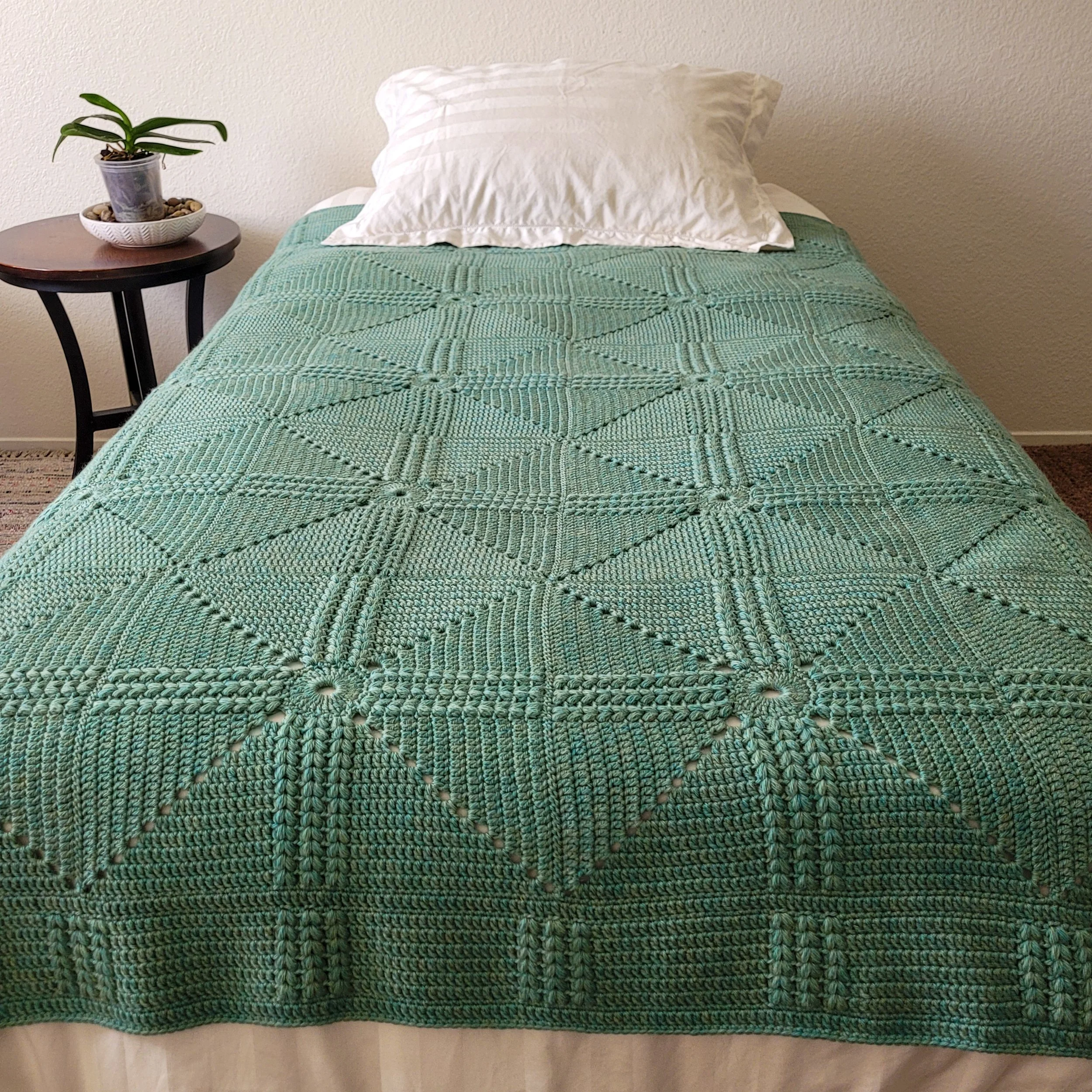 The sample shown here was made with a G/6/4.00mm crochet hook and Cascade Yarns Cascade 220 medium (worsted) weight 100% wool (3.53 oz/220 yds/100 g per hank) in the color #1003 Aventurine Heather. The project required 20 hanks of this yarn.